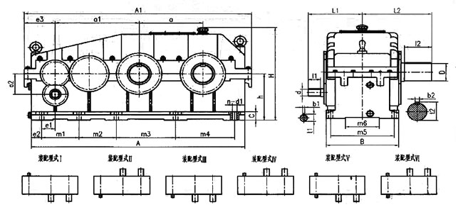 開煉機(jī)齒輪箱外形尺寸及裝配形式